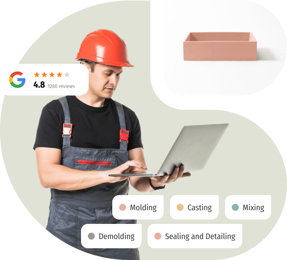 Whether you want to expand your DIY skills, start your own business, or add new skills to your existing services, Concrete Studio’s Introduction to GFRC Online Course will show you the complete process of making beautiful concrete pieces, from building the form to casting your pigmented mixture, and finally how to detail and seal your pieces.